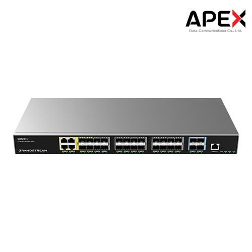 Grandstream GWN7832 เป็น Layer 3 aggregation switch รองรับ 12 10G SFP+, 4 GE และ 6–24 Gbps SFP พอร์ต มีความปลอดภัยสูงและจัดการง่ายทั้ง IPv4/IPv6.